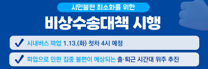 서울 시내버스 파업, 출근길 비상수송대책과 무료 셔틀버스 노선 확인 방법 [2026.01.13]