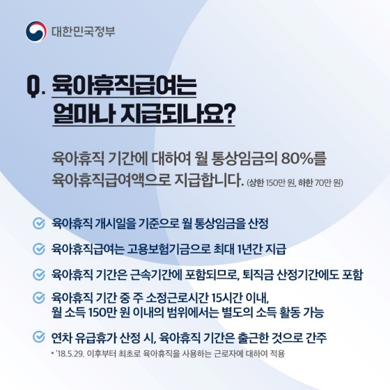 - 육아휴직 시작일 기준으로 고용보험 피보험자 자격이 있을 것