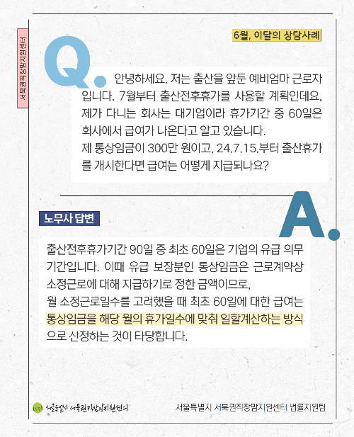 출산휴가급여는 근로자의 월급을 기준으로 계산됩니다.